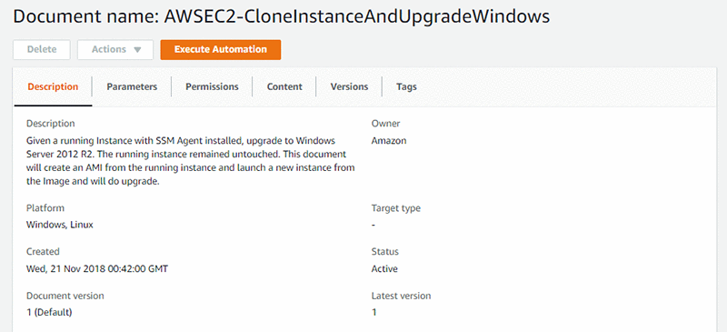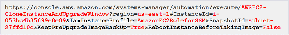consulte la página SSM AWSEC2-CloneInstanceAndUpgradeWindows en la documentación de System