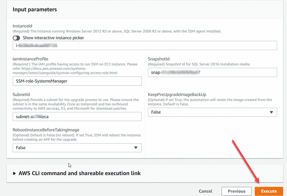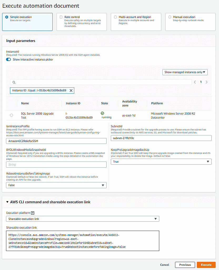 CloneInstanceAndUpgradeWindows y SSM AWSEC2-CloneInstanceAndUpgradeSQLServer, para ayudarlo a