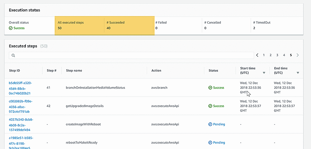 Una vez que se inicia el proceso de ejecución, supervise el progreso del documento a través de cada paso desplazándose hacia abajo y mirando las páginas de progreso.