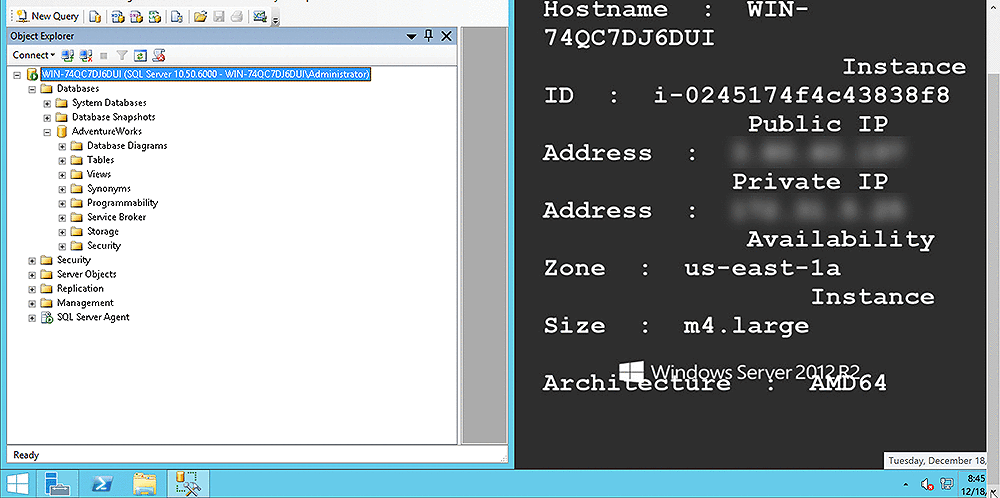 SQL Server 2008 R2. Puede probar la funcionalidad de la aplicación iniciando la nueva AMI en su VPC.