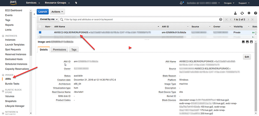 ImageId: AMI-01f63 * * * * * * *). Puede iniciar la AMI para ver que Windows está actualizado.