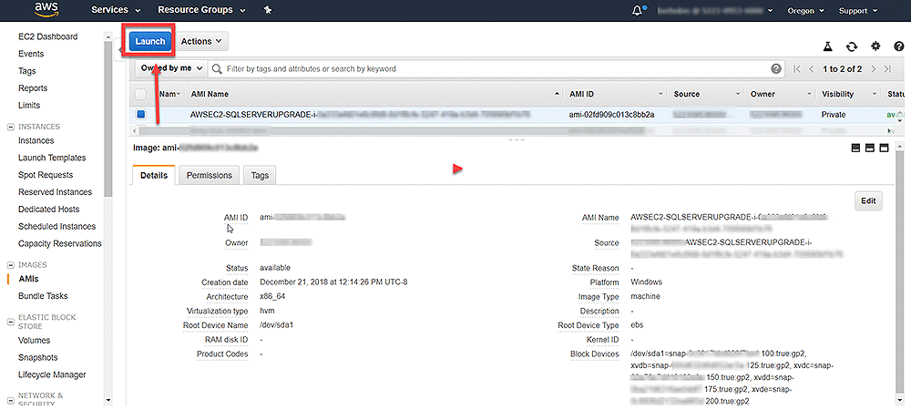 Para iniciar la nueva AMI, apriétela y elija Launch.