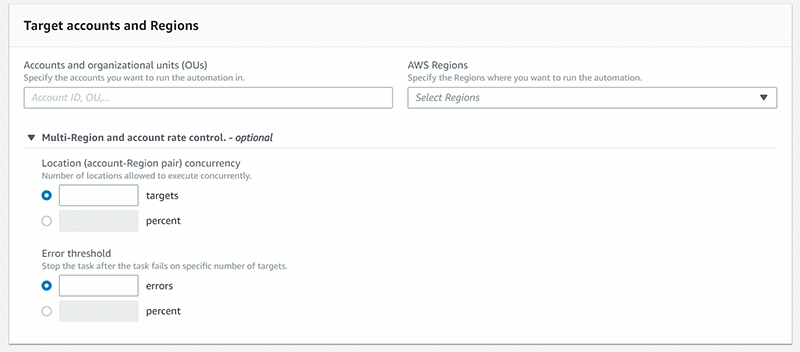 Aquí, puede especificar varias regiones de AWS en las que desea ejecutar la automatización.