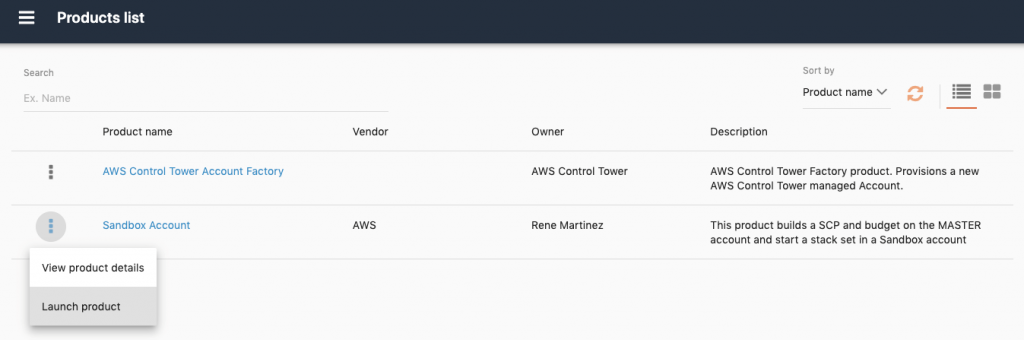 En el catálogo se puede observar que se creó un nuevo portafolio llamado: SandboxAccount.