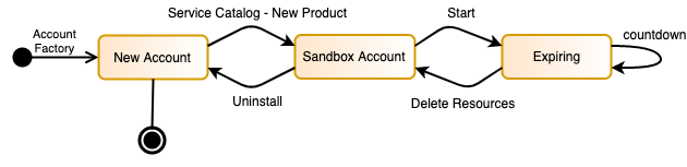 Acá se presenta el diagrama de estados que comprende el ciclo de vida de una cuenta de prueba creada por esta solución.