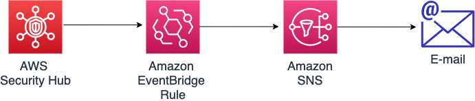 En la arquitectura siguiente, le mostraremos cómo enviar notificaciones para los hallazgos de gravedad de alto nivel recibidos a través de AWS Security Hub. Para ello, utilizaremos los servicios de Amazon EventBridge para recibir notificaciones de nuevos eventos, filtrar eventos de alta gravedad y activar notificaciones a través de Amazon Simple Notification Services (SNS). En nuestro caso de uso, utilizaremos SNS solo para notificar al equipo de respuesta a incidentes por correo electrónico; sin embargo, el servicio también le permite activar varios servicios que podrían utilizarse para corregir automáticamente el incidente, como AWS Lambda o AWS Step Functions.