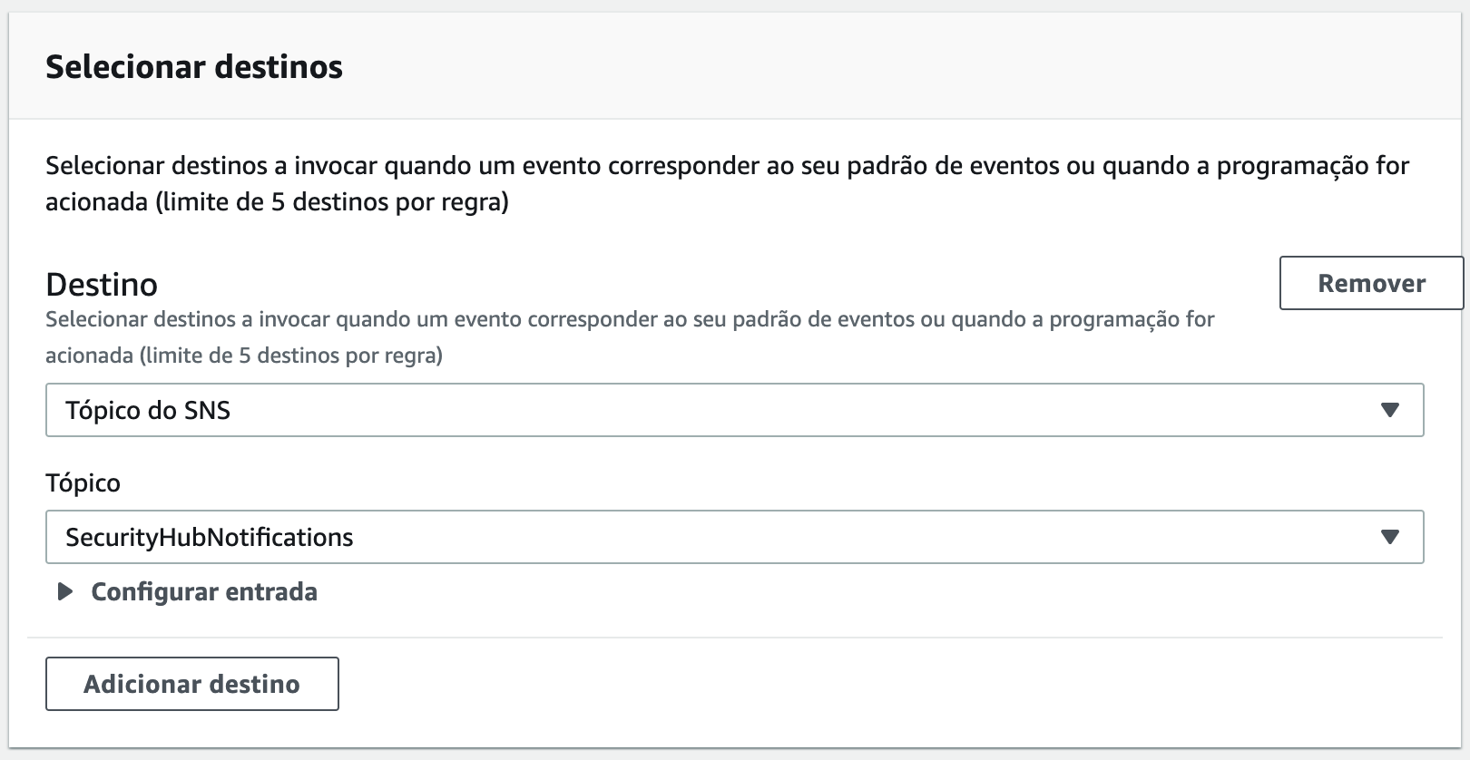 5. El siguiente paso para crear reglas de Amazon EventBridge es definir el tópico de destino para los nuevos eventos reconocidos. En este paso, seleccione el tópico creado anteriormente: