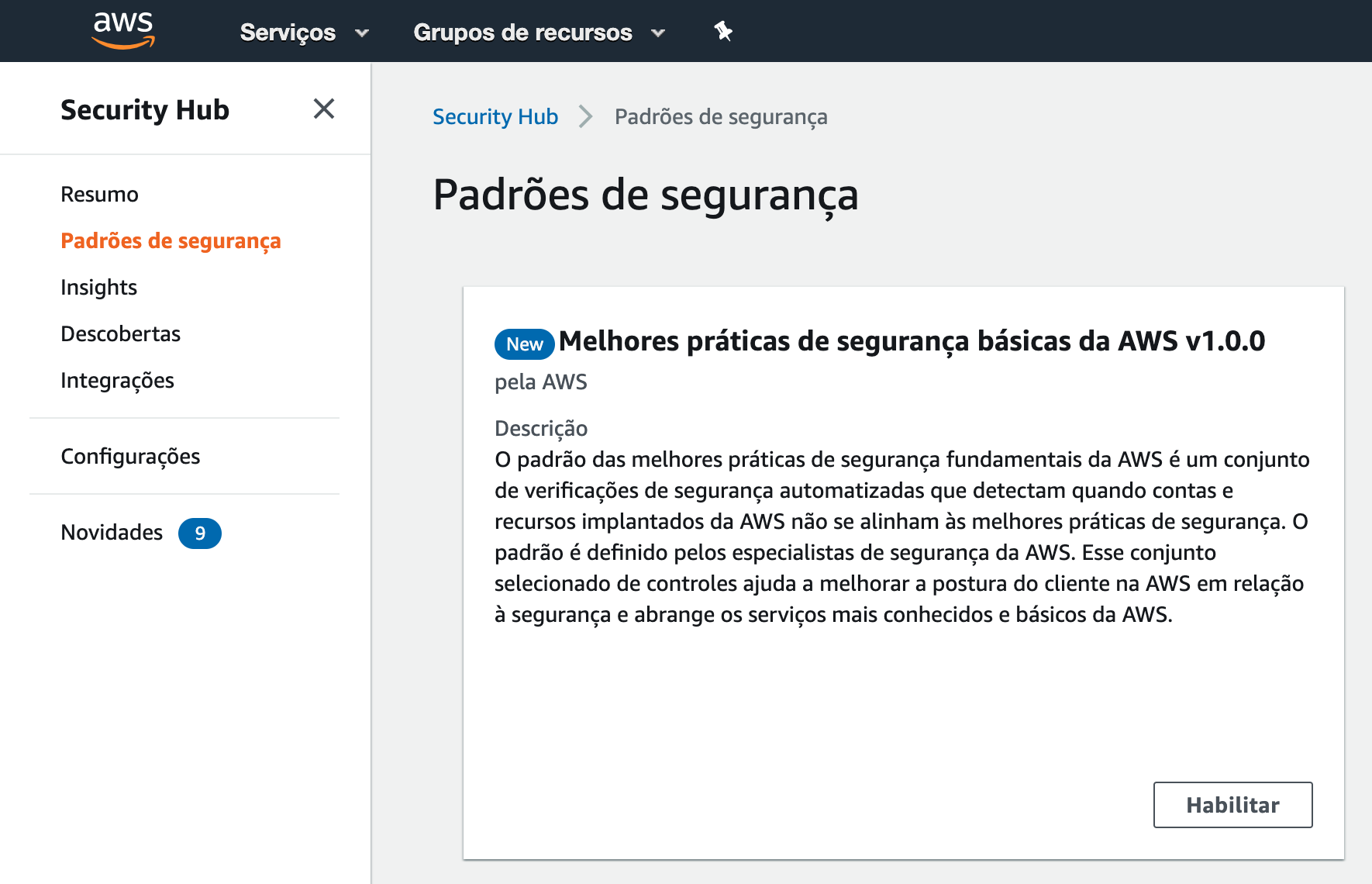 Figura 4: Habilitación del estándar de prácticas recomendadas de seguridad fundacional de AWS