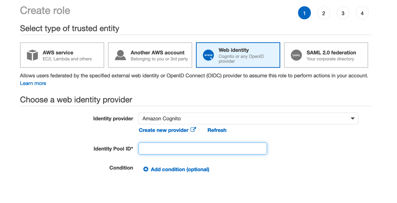 - Para crear un grupo de identidades, utilice este tutorial: Creación de un grupo de identidades en Cognito