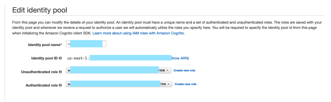 En el proceso de configuración de autenticación, deberá crear al menos un rol de IAM para el usuario autenticado que se asociará con el grupo de identidades.