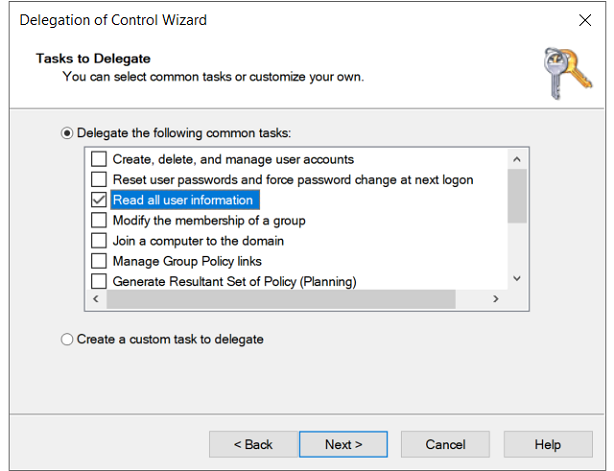 2. Agregue el permiso de lectura a la service account de ADFS (bosque de origen) para todos los objetos del bosque de destino.