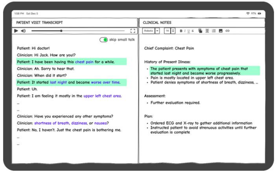 - Traducir conversaciones entre médico y paciente a notas médicas para el expediente.