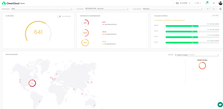 Con el advenimiento de la LGPD es esencial ser enérgico en el control del entorno de la nube para mostrar diligencia y responsabilidad frente a la nueva ley, y con CleanCloud Score evolucionamos en esta dirección todos los días.