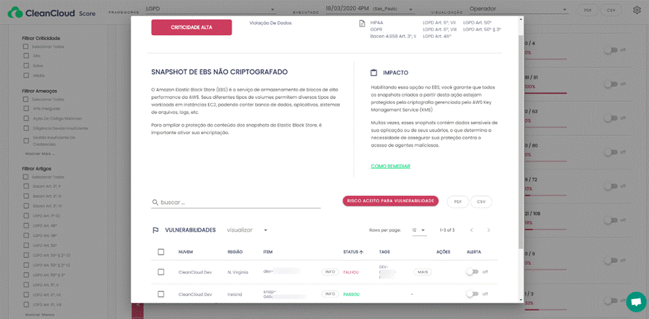 Puntuación de CleanCloud: Gestión del cumplimiento de LGPD