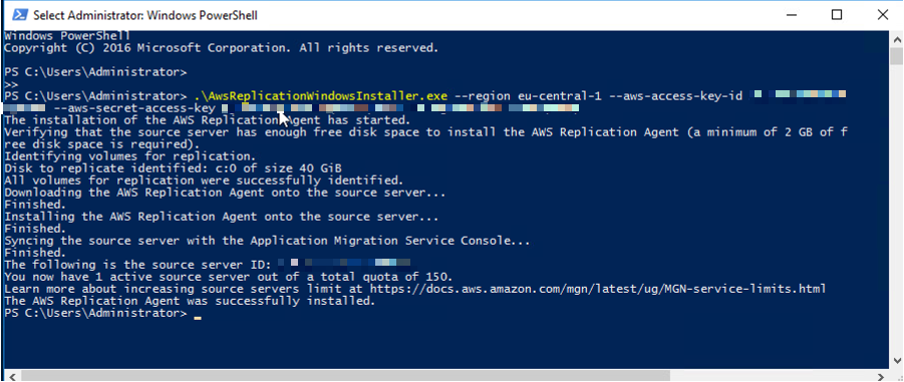 Figura 11 – Ejecute los comandos necesarios para instalar el agente en los servidores de origen Windows.