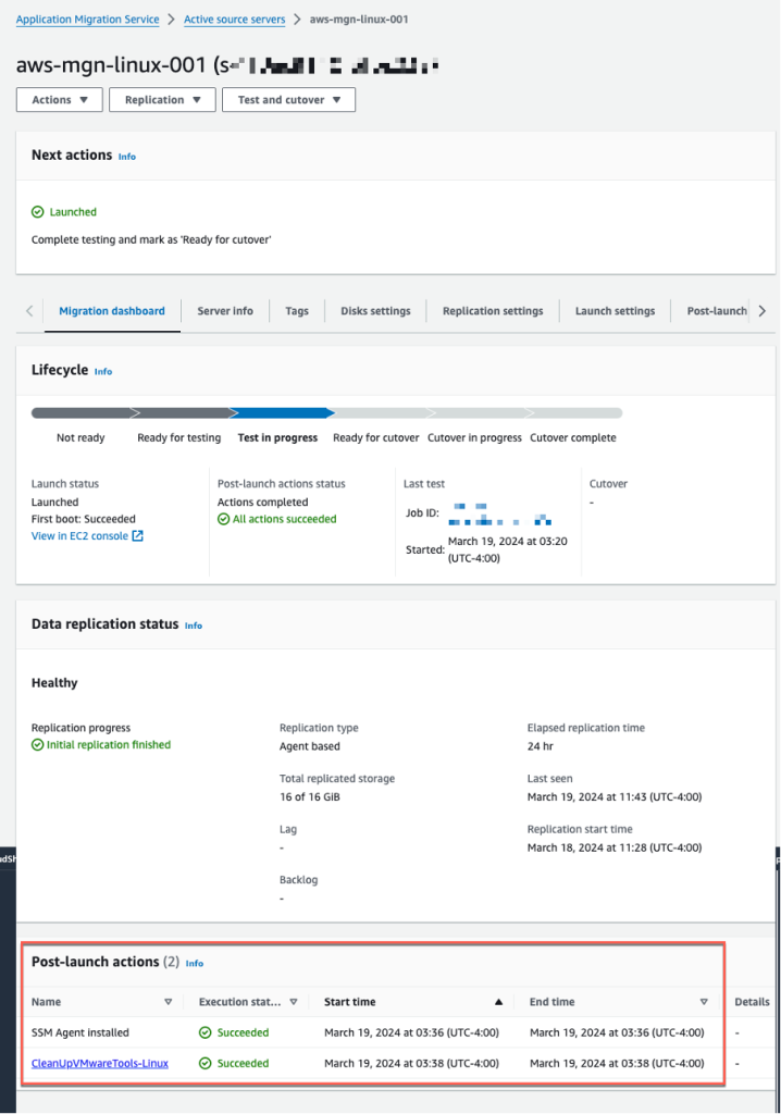 - Selecciona el menú Test and cutover (Figura 16).