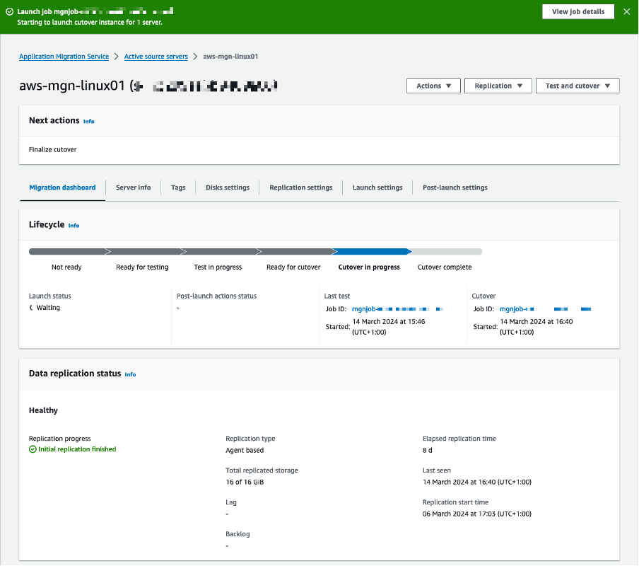 - En Cutover (Figura 18), seleccione Launch cutover instances.