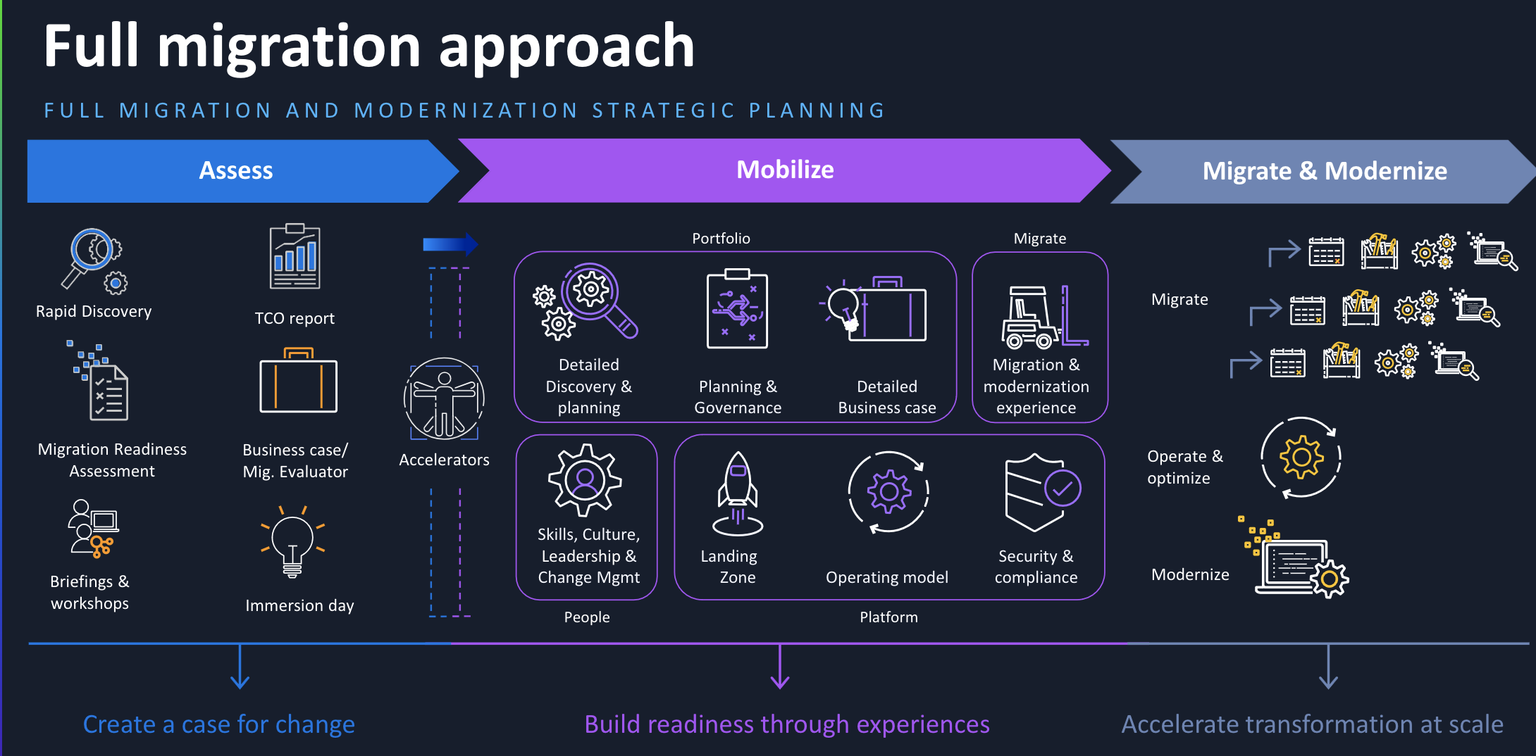 - La migración tal y como están las cargas de trabajo, la operación, optimización en la nube y la modernización.