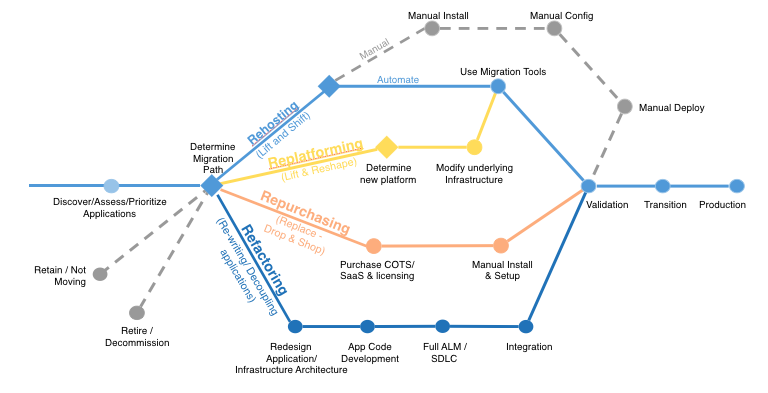 - Retain: En algunos casos no hace sentido para el negocio migrar alguna aplicación sea porque ella fue actualizada recientemente o porque todavía no fue priorizada en el momento de la jornada.