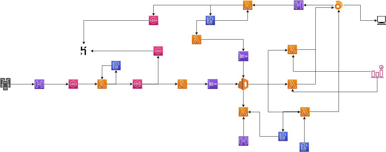 El API Gateway y el AWS AppSync son usados como proxy de llamada de las funciones Lambda y demás recursos de AWS que necesitan ser accedidos por la aplicación monolítica. Esos recursos son DynamoDB, como banco de datos, y SQS y SNS como mensajería y envío de mensajes. DynamoDB permite almacenar los eventos generados por las llamadas con rapidez en la escritura y la recuperación en milisegundos en la lectura, posibilitando reportes casi en tiempo real.