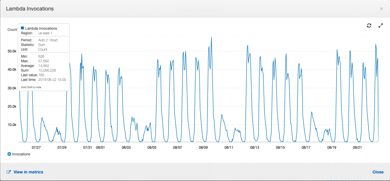 En un mes, son hechas cerca de 10 millones de requisiciones Lambda a la aplicación de Atende Simples, 5 millones de requisiciones al Amazon SQS, 32 millones de requisiciones de lectura y 9.9 millones de requisiciones de escritura a Amazon DynamoDB. El poder computacional exigido para soportar esa carga es enorme, lo que difícilmente seria hecho en un ambiente en-sitio.