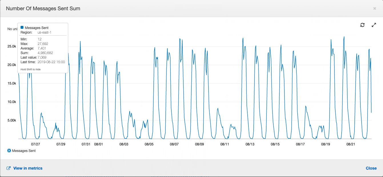 Figura 4. Total de requisiciones a Amazon SQS.
