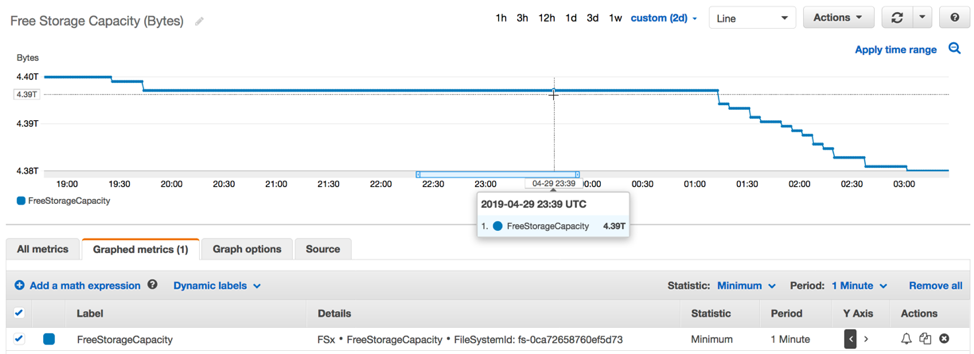Amazon FSx for Windows File Server publica seis métricas en Cloudwatch con granularidad por minuto. Las métricas que publicamos son DataReadBytes, DataWriteBytes, DataReadOperations, DataWriteOperations, MetadataOperations y FreeStorageCapacity. Al igual que con otros servicios de AWS, puede usar Metric Math para simplificar la monitorización de su sistema de archivo casi en tiempo real. Veamos cómo funciona.