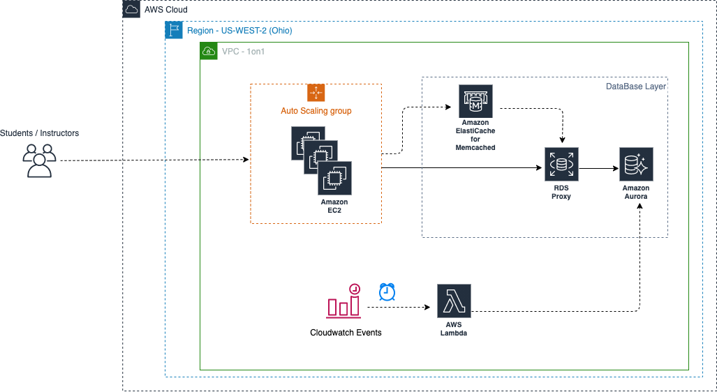 One on One for Classroom® experimentó un pico de peticiones record de 1,052,165 millones en un solo día. Esto se manisfesto con altos tiempos de respuesta, aleatorios, dada la sobresaturación de conexiones. Para mejorar la experiencia del usuario, el equipo rápidamente implemento Amazon RDS Proxy. Esta estrategia permite a One On One manejar de forma efectiva oleadas no-predecibles de conexiones mediante la implementación de Grupos de Conexiones y reutilizar conexiones ya existentes en el grupo y, así, eliminando el consumo de memoria y CPU requeridos en la apertura de cada nueva sesión