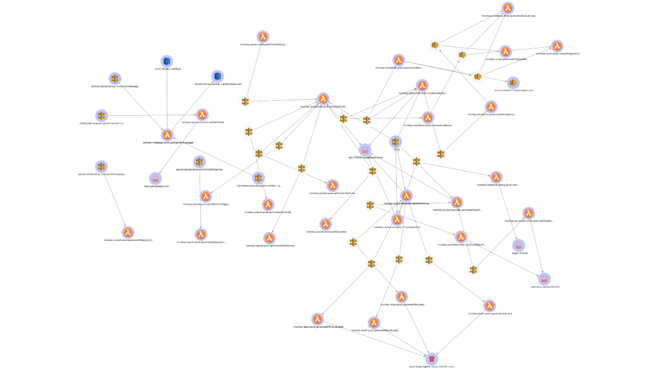 Figura 2 – Mapa de microservicios basados en AWS Lambda de San Saru
