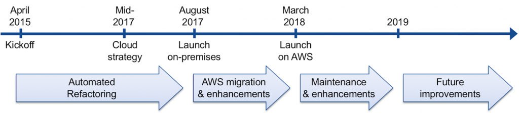 Una vez que la aplicación fue probada y estabilizada, el trabajo comenzó en agosto de 2017 para mover la aplicación a la nube de AWS. Este fue un proyecto de ocho meses, que también incluyó los siguientes cambios:
