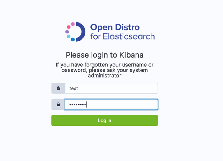 Las pantallas de inicio de sesión web en Kibana son diferentes, dependiendo de si está administrando los usuarios en la base de datos interna o si está utilizando Amazon Cognito.