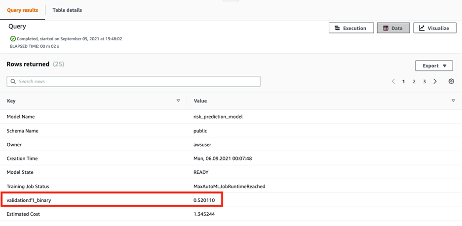 1. Ejecutamos los siguientes comandos para crear el modelo. Durante la creación del modelo, se deben definir las variables que harán parte del modelo y que serán usadas por Sagemaker Autopilot para definir cuál es el mejor modelo. Además se creará la función de SQL que será utilizada para hacer inferencias sobre Redshift.