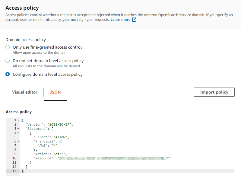 La autenticación SAML para OpenSearch Dashboards le permite utilizar su proveedor de identidad existente para proporcionar inicio de sesión único (SSO) en dominios de Amazon OpenSearch Service que ejecutan OpenSearch o Elasticsearch 6.7 o posterior. Para usar la autenticación SAML, debemos habilitar un control de acceso detallado. No puede habilitar un control de acceso detallado en los dominios existentes, solo en los nuevos. Por extensión, esto significa que solo puede habilitar la autenticación SAML en dominios nuevos o dominios existentes que ya tengan habilitado el control de acceso detallado.