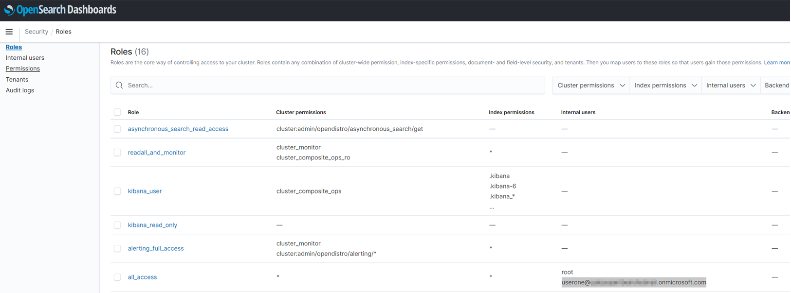 Una vez que iniciamos sesión, estábamos con un usuario autorizado para realizar otras configuraciones pertinentes, como registrar nuevos usuarios y/o grupos de Azure AD con roles en OpenSearch Dashboards, manejando así la autorización de acuerdo con sus necesidades.