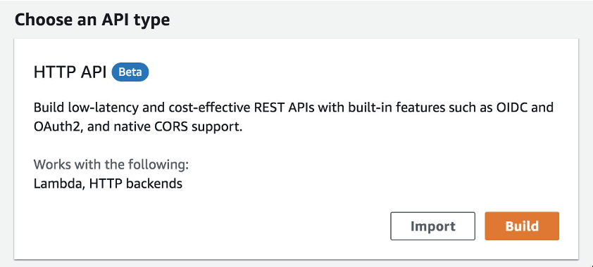 La interfaz de creación de API en API Gateway se ha vuelto mucho más intuitiva y ya trae la opción de crear una API HTTP.