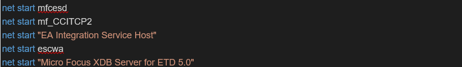 COMANDOS PARA INICIAR SERVICIOS DE MICRO FOCUS: