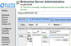 Después de compilar los archivos, puede iniciar los servicios de Micro Focus y el servidor BANKDEMO en la instancia EC2 para ejecutar las pruebas porque Micro Focus Enterprise Developer ya contiene el Enterprise Server.