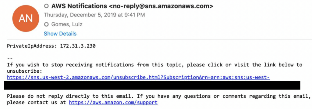 El siguiente paso en el proceso es esperar a que el usuario realice sus pruebas unitarias y funcionales, con Micro Focus Enterprise Developer accediendo a la instancia EC2 que ya se está ejecutando y configurando el entorno de emulación, incluida la versión de la aplicación. recién compilado Para que esto sea posible, el desarrollador recibe un anuncio por correo electrónico (Figura 9) enviado por la plataforma Amazon Simple Notification System (SNS) junto con el Amazon Simple Email System (SES).