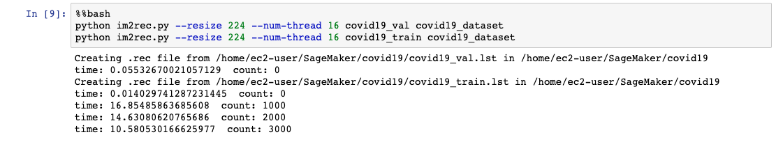 Utilizando los archivos lst crearemos los archivos recordIO redimensionando las imágenes para un tamaño único.