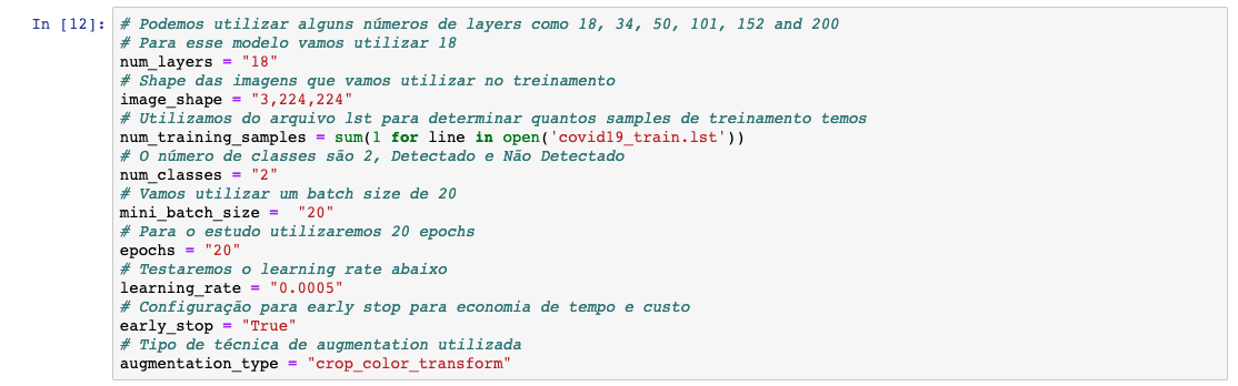 Otras configuraciones están descritas en los comentarios. Mas informaciones sobre las posibilidades de hyperparameters están disponibles en el link https://docs.aws.amazon.com/sagemaker/latest/dg/IC-Hyperparameter.html