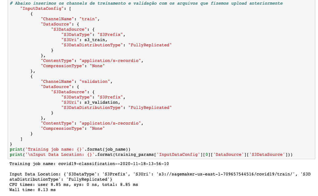 Con el dataset creado y dividido en entrenamiento y validación, vamos a utilizar la biblioteca boto3 para subir el archivo al S3 y almacenar en variables a ser utilizadas como channel posteriormente.