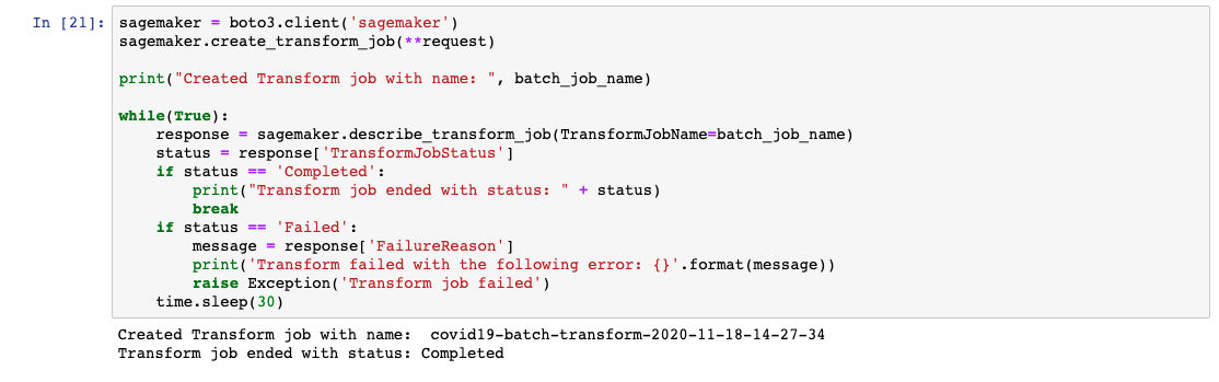 En la celda inferior creamos el job de inferencia en batch y aguardamos la conclusión del mismo
