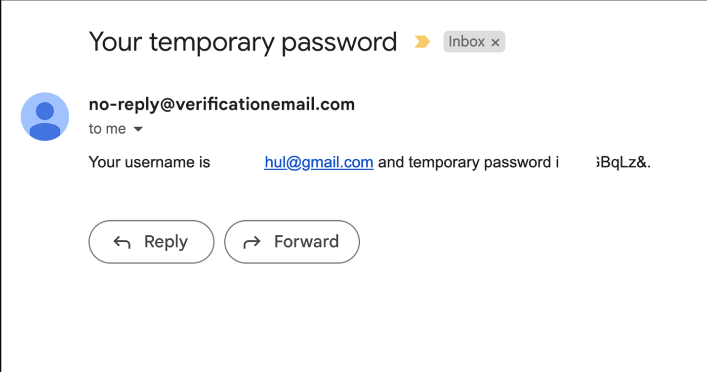 5. Log in to your email account (The account specified while deploying the stack). Copy the username and temporary password sent you. Use the screenshot below for reference.