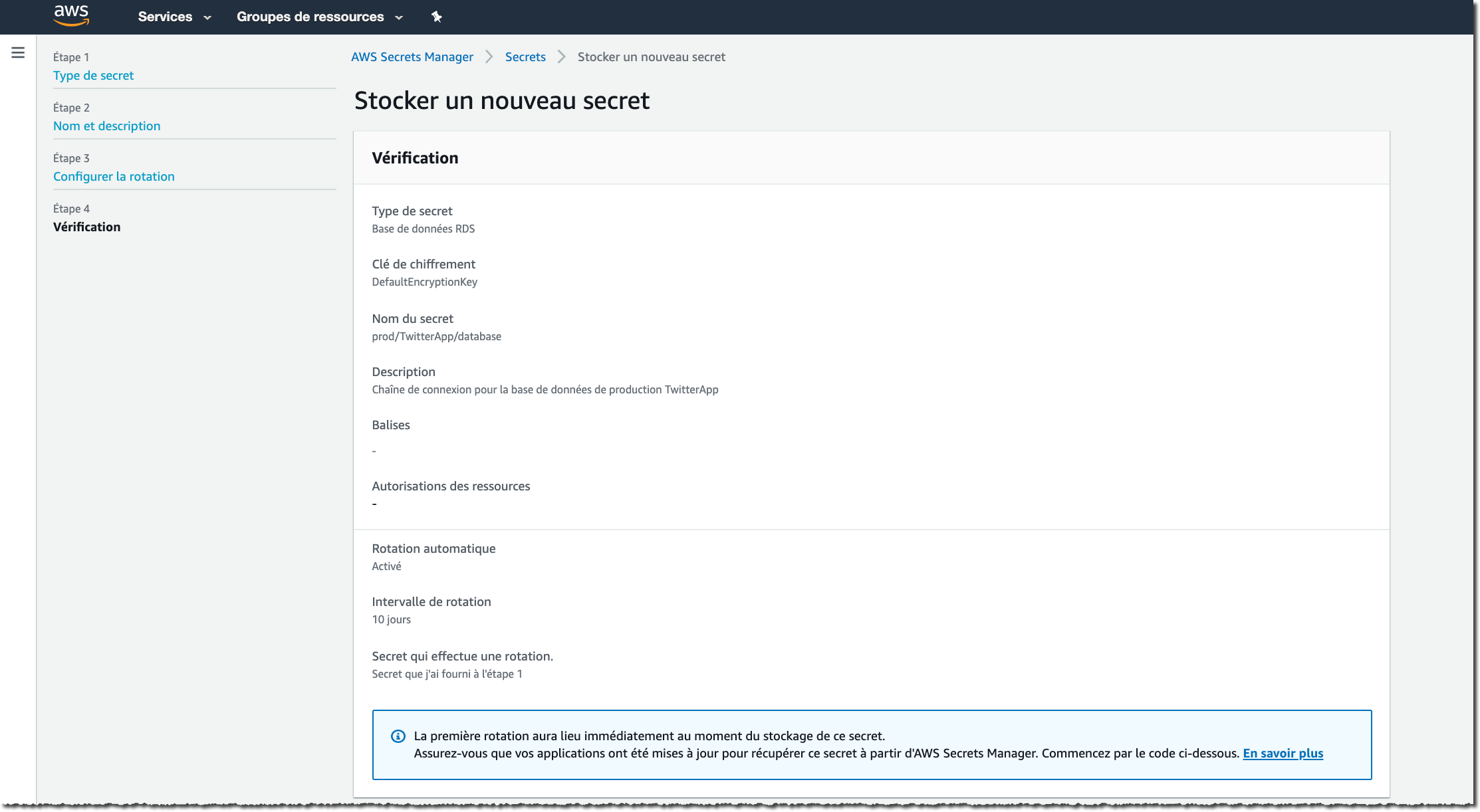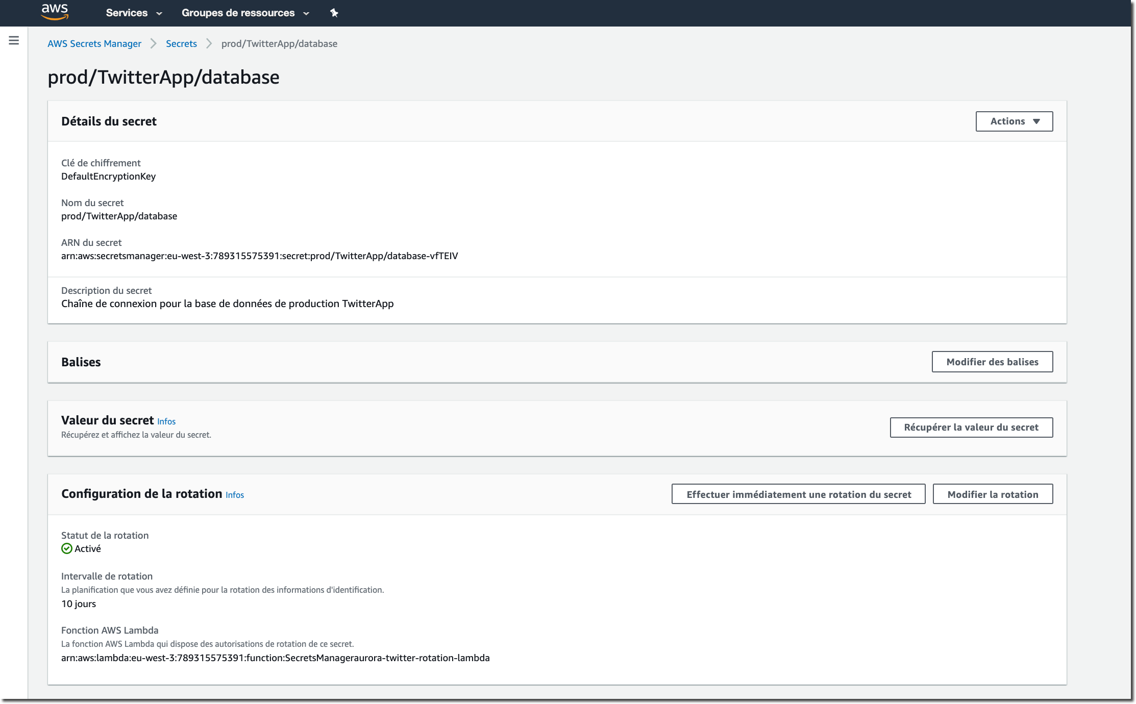 Enfin, je peux revoir les détails de mes secrets dans la console.
