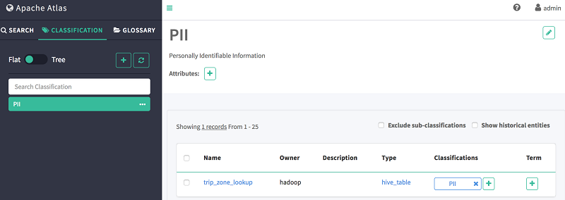 Atlas peut également vous aider à classifier les méta-données afin d’être conforme aux exigences en termes de gouvernance de la donnée qui sont spécifiques à votre entreprise. Dans ce qui suit, nous verrons comment créer une classification relative au données personnelles (PII).