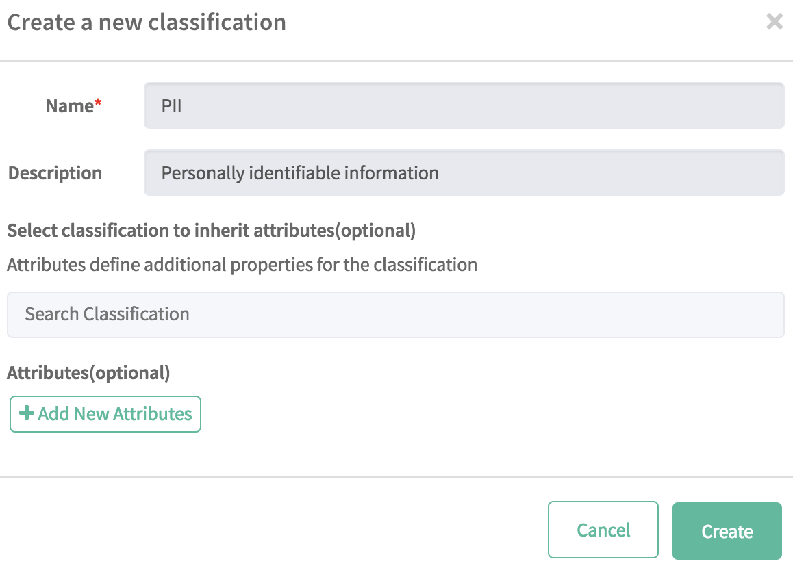 PIIau niveau du champ Name, etPersonally Identifiable Informationau niveau du champ Description - Cliquez sur Create