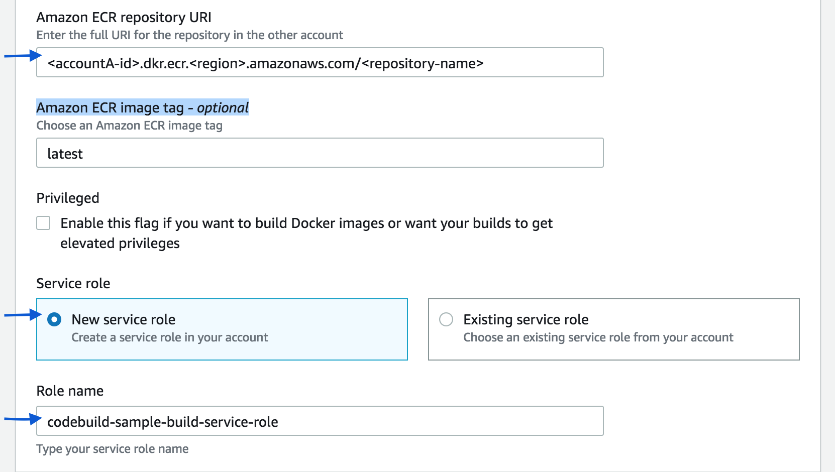 En utilisant les étapes suivantes, autorisations dans AWS CodeBuild dans votre référentie Amazon ECR pour extraire l’image Docker du référentiel dans l’environnement de construction.