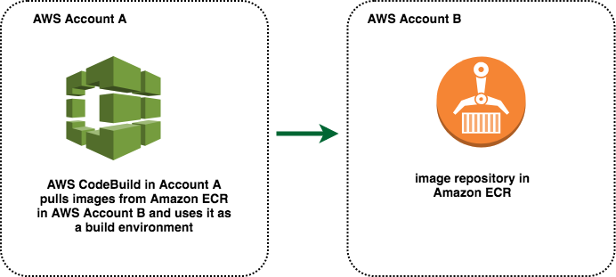 - Dans le compte AWS B, un reférentiel Amazon ECR. Dans le compte AWS B, les images que vous souhaitez utiliser pour votre environnement de build. Si vous ne disposez pas d’un registre d’images et d’un exemple d’image, consultez Exemple de Docker dans le Guide de l’utilisateur d’AWS CodeBuild