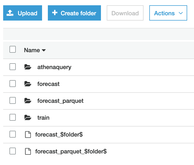 Nous pouvons constater que la tâche a bien fonctionné en nous rendant dans notre compartiment S3. Nous pouvons constater la présence d’un nouveau répertoire “forecast_parquet” contenant nos données de prévision au format Parquet.