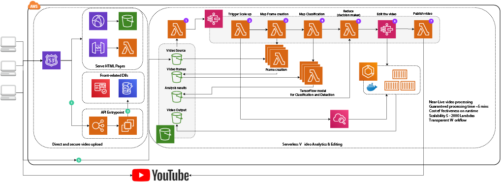 « Notre infrastructure est pensée pour faire du calcul vidéo « serverless » : nous utilisons AWS Lambda/AWS Step Function et Amazon S3 pour faire un map-reduce sur la vidéo. En terme de temps de calcul, nous pouvons analyser 10h de vidéo en 2 minutes, malgré le fait que l’ensemble de l’analyse est fait en CPU, grâce à la parallélisation sur AWS Lambda. »
